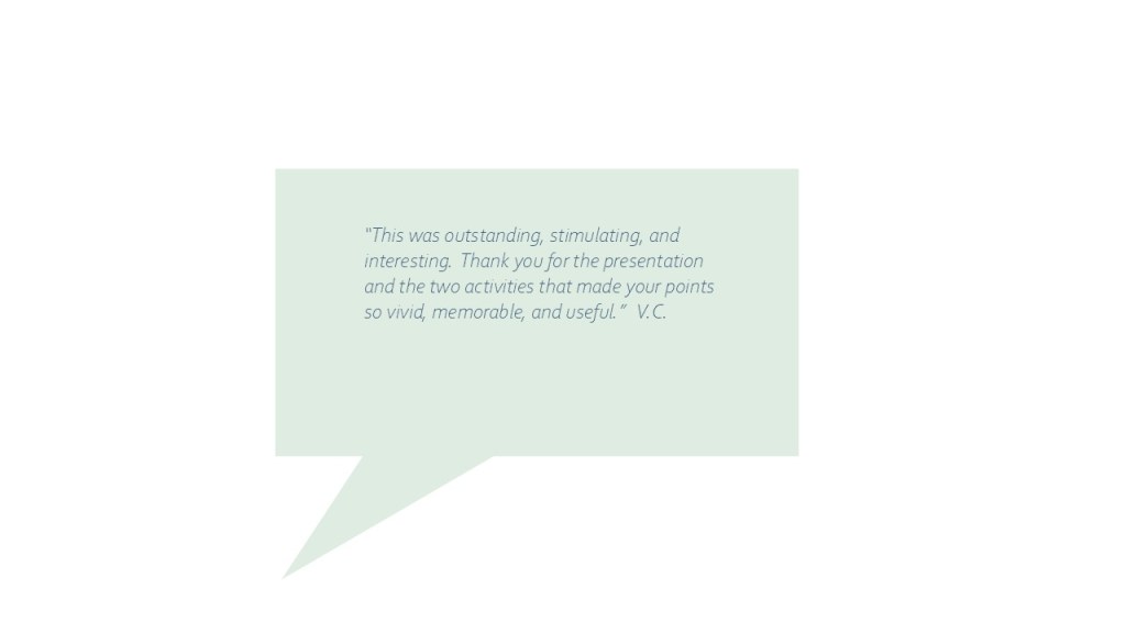 As a speaker and workshop facilitator, I use the Science of EmotionsTM to help team leaders recognize the hidden driver of success and failure in organizations – the emotional culture of the workplace.